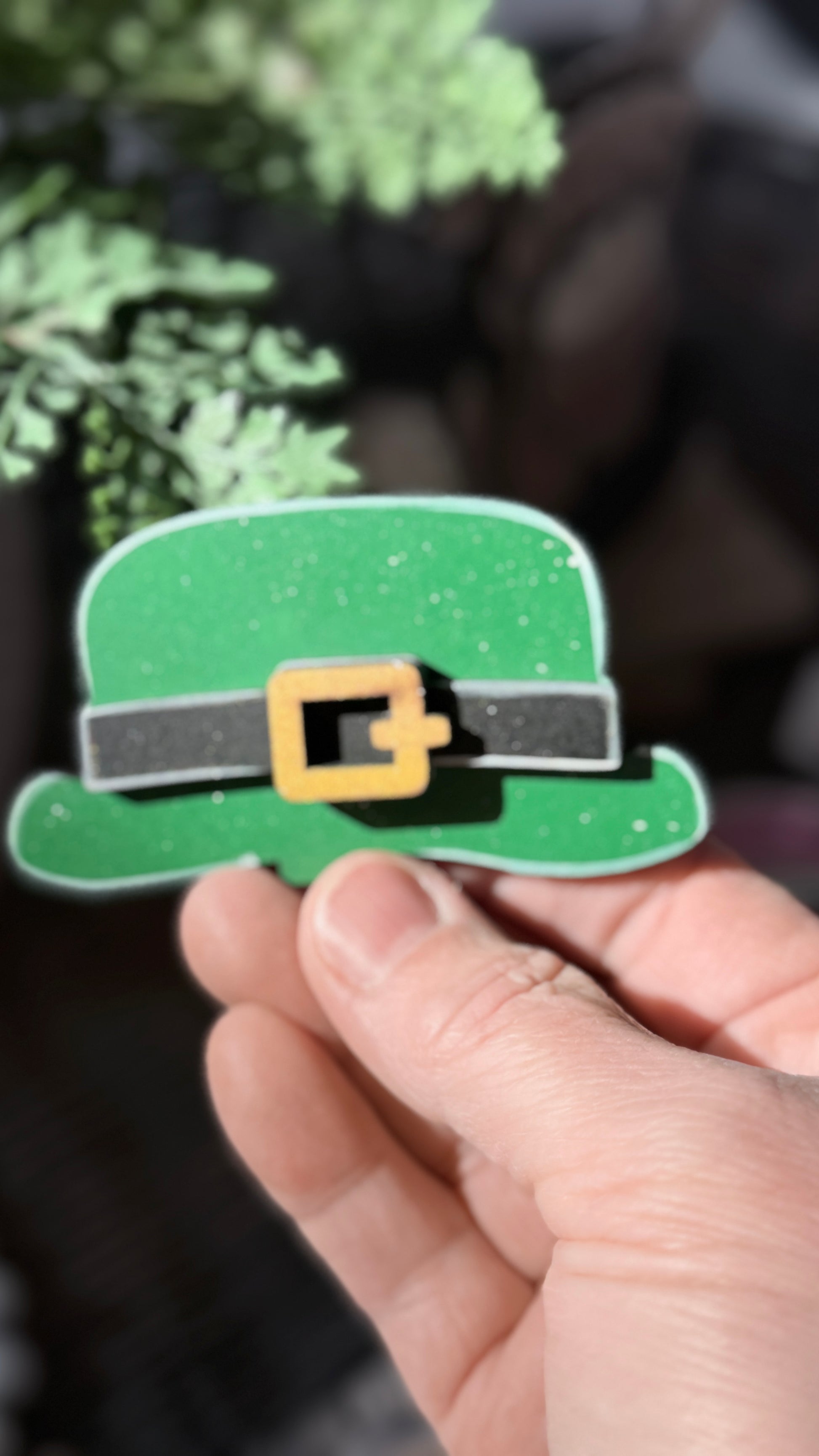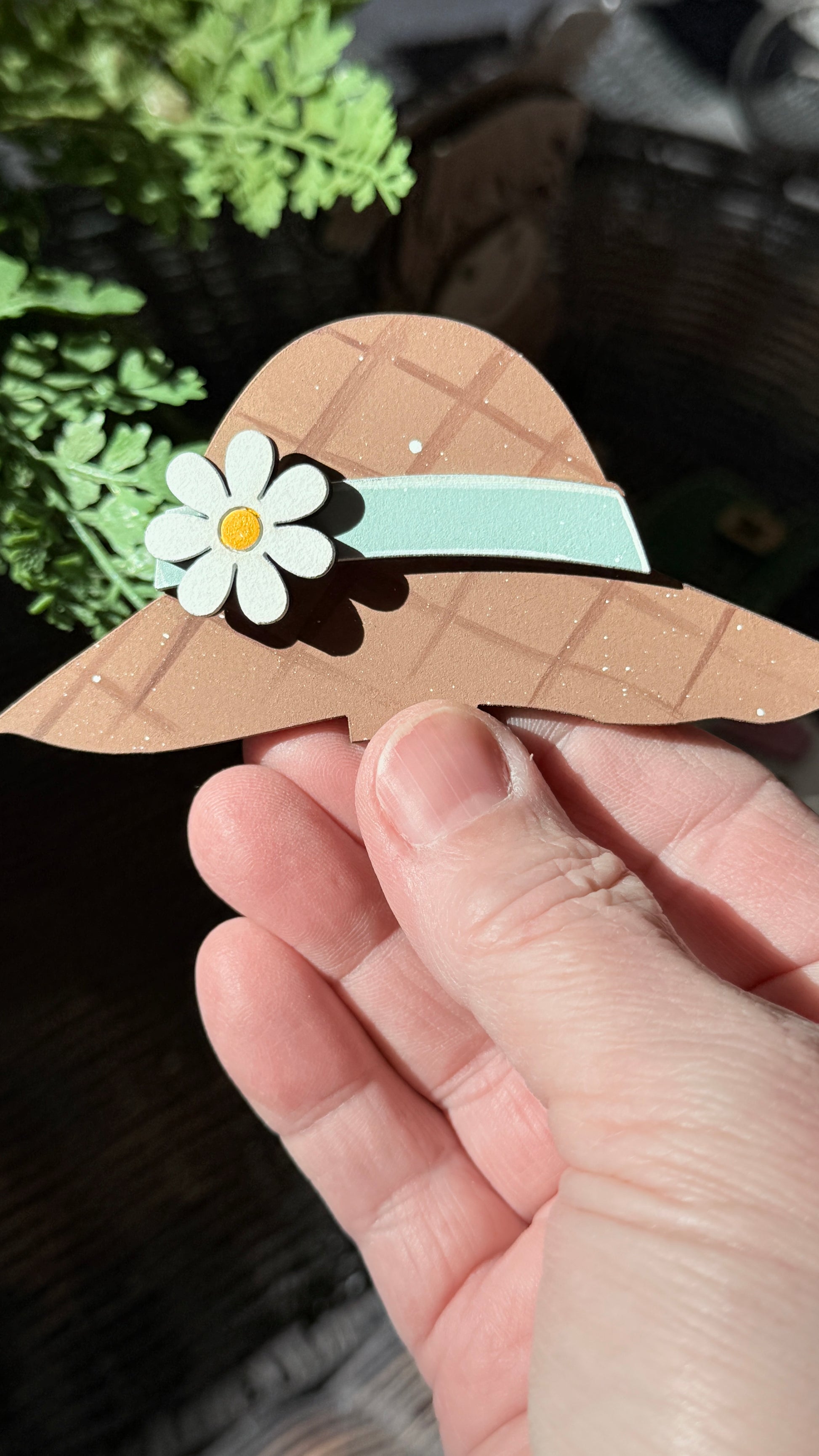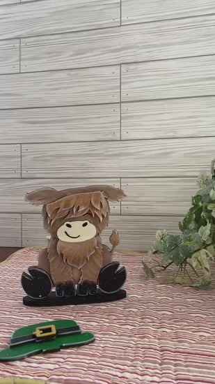 This cow is approx 4.5x5” and has three add-on hat options. The Irish cap, Easter bunny ears, and a spring bonnet.